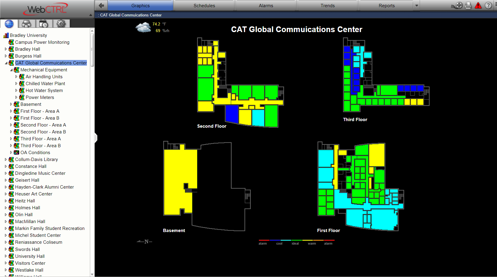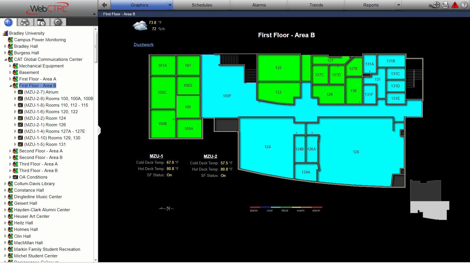 The intuitive WebCTRL front-end provides the facility staff with the analytical tools they need to ensure system operations, energy efficiency, and occupant comfort. Advanced scheduling of zones enabled high-performance sequence of operation on major mechanical equipment that helps to reduce energy intensity and environmental impact. The project is projected to have a Simple Return on Investment (ROI) of 2 years or less!