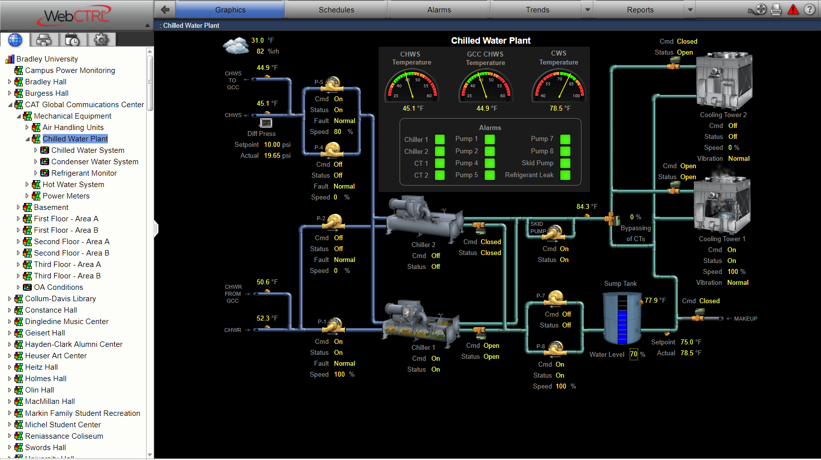 An outdated controls system was preventing the owner’s facility staff from properly monitoring and maintaining the HVAC equipment that serves the building. This included a 900-ton chilled water plant that also provides cooling to many of the dorm buildings on campus. The lack of control was having a negative impact on occupant/student comfort and resulting in higher utility costs.